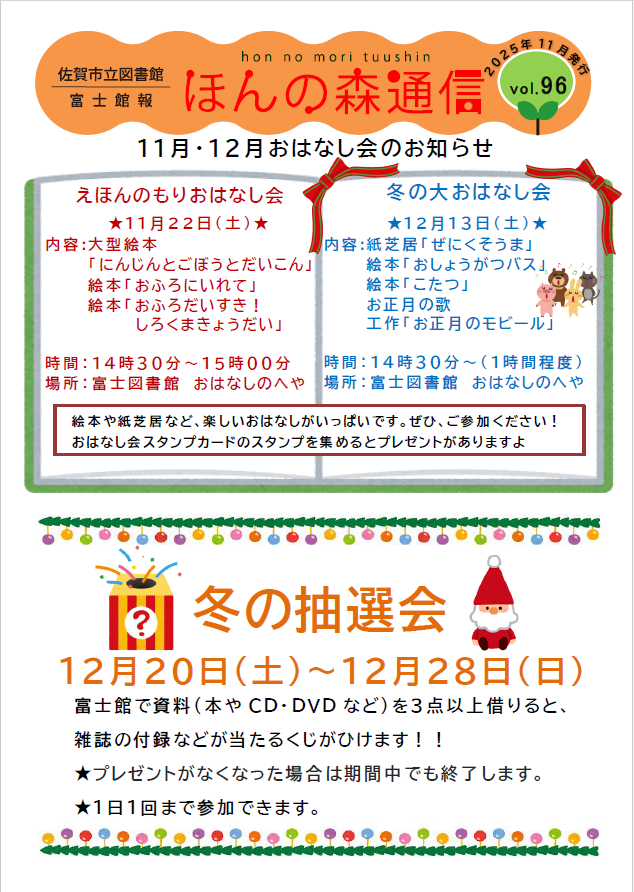 トップページ > 新着情報一覧 > 新着情報(富士館) > 2025年 > 富士館報「ほんの森通信」vol.96を発行しました!